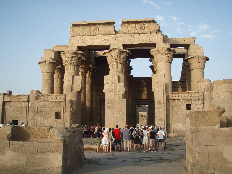 享受過甲板上的咖啡、小餅乾,及還有點熱情的太陽公公之後,4:30郵輪停靠在有「黃金之都」稱譽的柯蒙波。我們下了郵輪,參觀在距離岸邊不遠的雙神殿,追尋埃及新王國時期的輝煌史蹟。