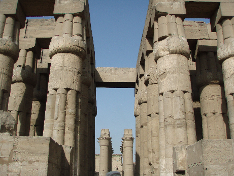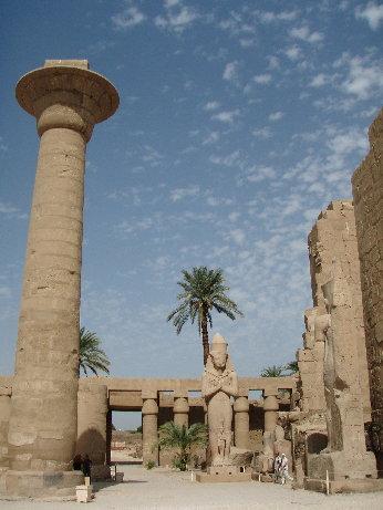 用過午餐後,又頂著火熱熱的太陽,趕去參觀最大的露天史前古蹟卡納克神殿。一聽到這神殿區竟有25公頃大,整個傻眼。隱約記得有非常巨大的神像及碩大的石柱林,至於導遊說了些什麼,幾乎被太陽公公烤乾了,完全沒進到腦袋裡。