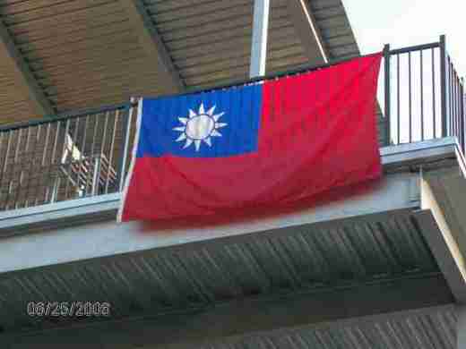原本球場上並沒懸掛中華民國的國旗,是球隊帶去的。
