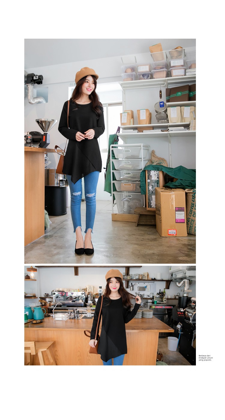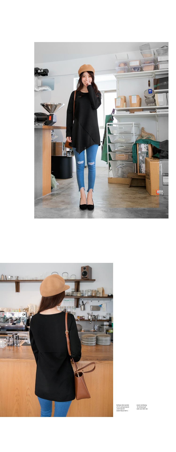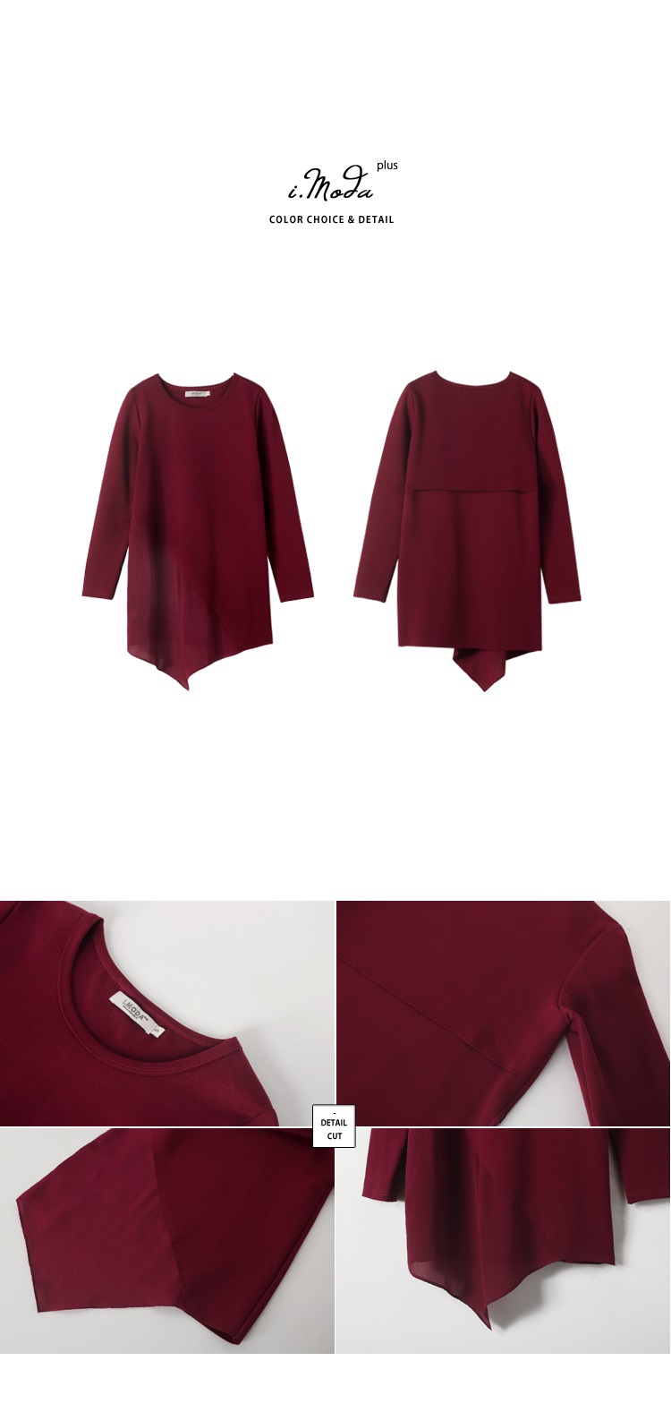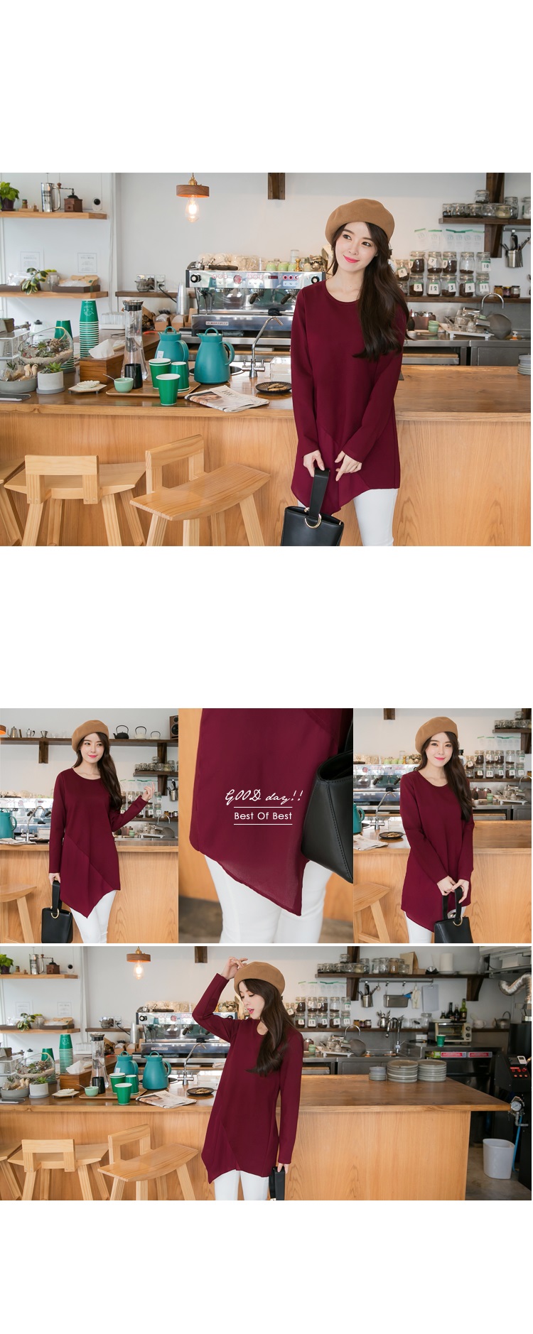 OB嚴選商品網址: 下襬拼接不規則雪紡質感素色長版上衣.2色