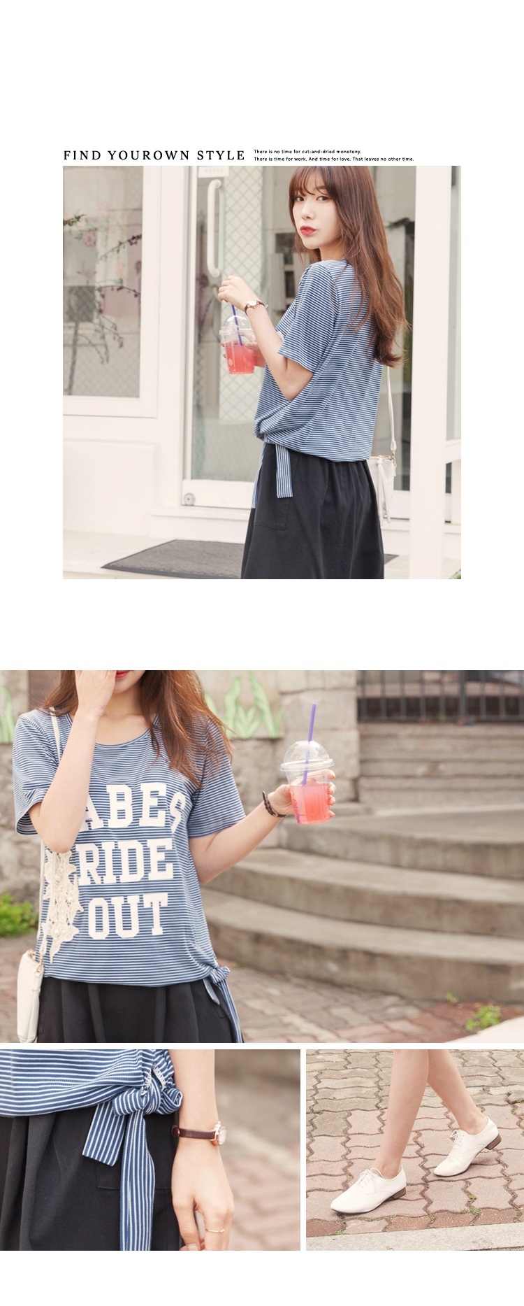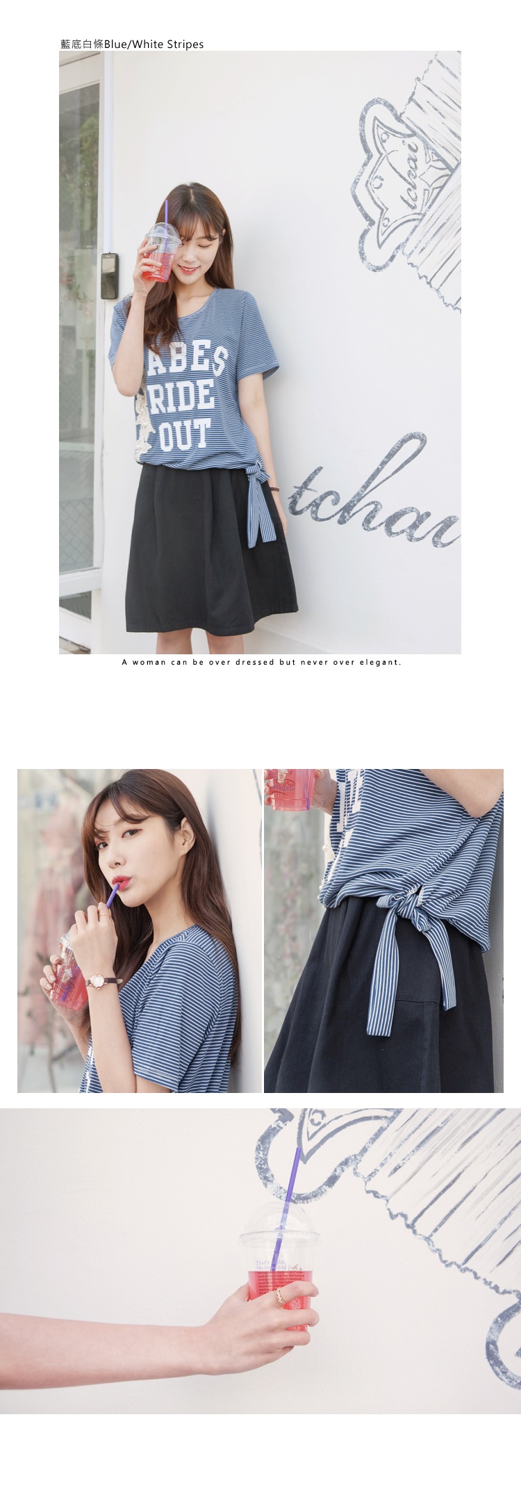 心動不如馬上行動,趕緊到OB嚴選購買0607新品 配色橫條英文燙印綴布蕾絲珍珠側綁帶造型上衣.2色