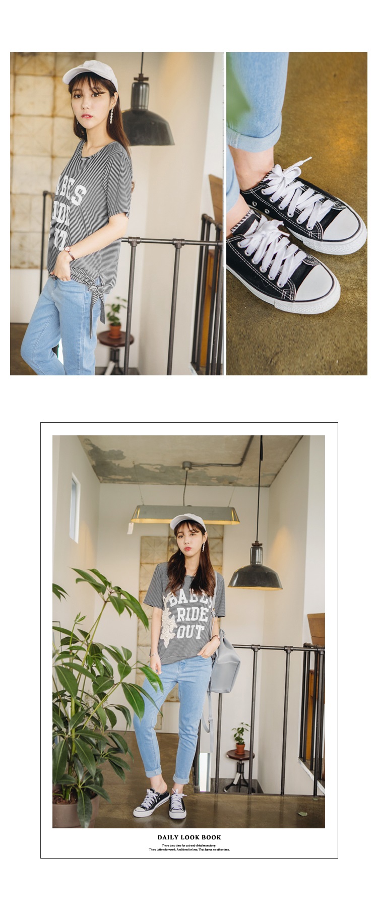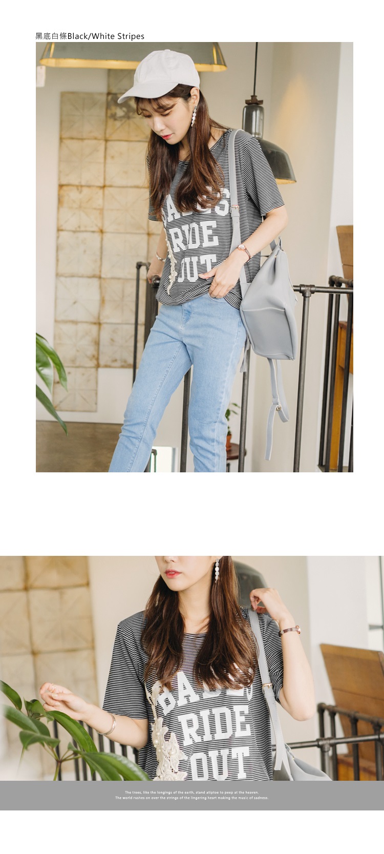2017OB嚴選春夏熱銷排行榜推薦0607新品 配色橫條英文燙印綴布蕾絲珍珠側綁帶造型上衣.2色