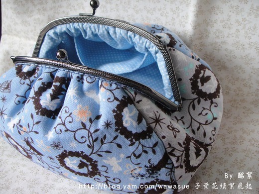 這個口金包,做起來有點膨膨的,因在口金上有縮縫做出皺褶效果。