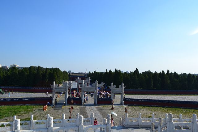 天壇共有東西南北四個門,如果是搭乘地鐵5號線就在天壇東門站下車,出口離東門的售票處非常近,可從此門進,由南門出,而且每個門口附近都有出租車在等客人,不是旺季的話,都挺好攔車的。