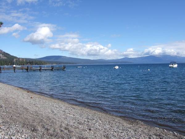 太浩湖真是一個人間仙境,難怪很多美國人喜歡來此度假,部分富豪人家更是在此買了度假小屋,櫛比鱗次的山間木屋,座落湖邊的豪宅或小居,都令人稱羨。冰涼而清澈的湖水、高聳壯碩的杉木、新鮮甜美的空氣,不時傳來各種蟲鳴鳥叫,美麗的沙灘和岩岸景色….處處驚艷!爸媽和小姑都非常喜歡這裡的湖光山色,這麼多年過去了,媽媽依舊記得這裡叫做「太浩湖」!