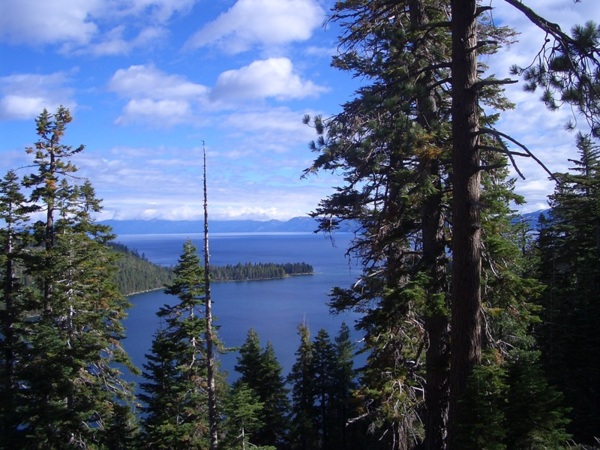隔天,大家很早就起床了,吃完簡餐就迫不及待開始今天的環湖行程。我們從南邊出發,順時鐘方向一圈,途中會經過幾個景點:落葉湖(Fallen Leaf Lake)、翡翠灣(Emerald Bay)、國王海灘(Kings Beach),當然,就自駕遊來說,走走停停是很稀鬆平常的,一路上只要是有停車場、觀景點、風光明媚的所在,我們就隨心所欲地停下來欣賞美景。