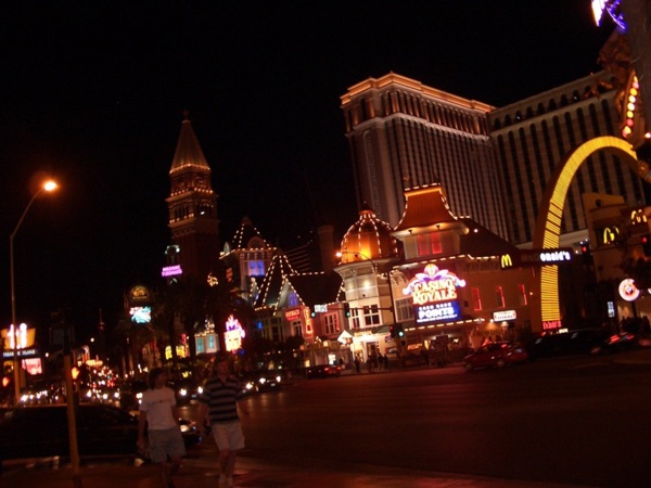 最後,來賭城觀光,除了看秀,一定要白天、晚上都看一回。因為白天有很多建築物可以參觀,可以大搖大擺地穿梭在各種不同的豪華飯店之間,威尼斯人的浪漫水城、凱撒宮的古典歐風、埃及金字塔的壯觀、迪士尼、巴黎鐵塔、倫敦橋…這是一個集合了全球元素的菁華濃縮,走一圈如同環遊世界。晚上有霓虹燈夜景,全城像是撒了寶石一樣到處閃閃發光,街上就有天幕放映、燈光秀、火山噴發、海盜船的表演,完全免費,這樣豐富多彩的城市,讓你停不下來,而且老少咸宜啊!