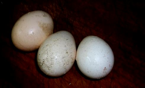 不知大家認得出來照片裡的三顆蛋哪個是土雞生的,哪個是火雞嗎?