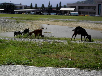 今天出門,更看到火車站前的一個新挖的水池,裡頭竟然有好幾隻羊在吃草。