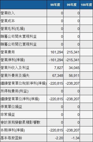 按照公開資訊觀測站的資料,普通股本19.3億新台幣,股東權益卻只剩下9.3億新台幣的價值,換句話說市值到2011/6/30為止已經蒸發了10億了吧!