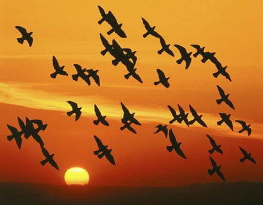 群雁戲晚霞,