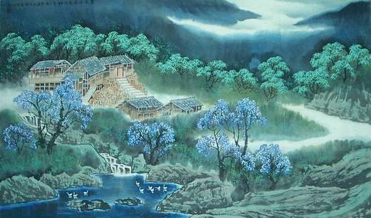 四川樂山山水書畫會會長。現為專業畫家。畫心:95公分X59公分。