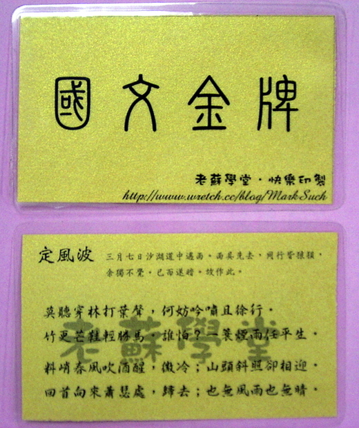 金牌國文師?當然不是指現在的我,以後的我也不太可能。這只是我鼓勵學生學習國文的最新力作而已,因為這當中包含了金幣和金牌。