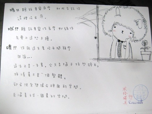 「這是誰出的鬼點子啊!?」聽完我在課堂上的講解,你心裡可能正咒罵著。當然,如果經過這樣的咒罵能讓你有機會成為作家的話,我也是心甘情願啦。其實我的腦袋瓜暫時還無法想出這麼豐富的內容,這得先感謝逢甲大學中文系張瑞芬教授的傾囊相授,才讓你們能夠嘗試如此有趣的暑假作業,可得好好珍惜啊!