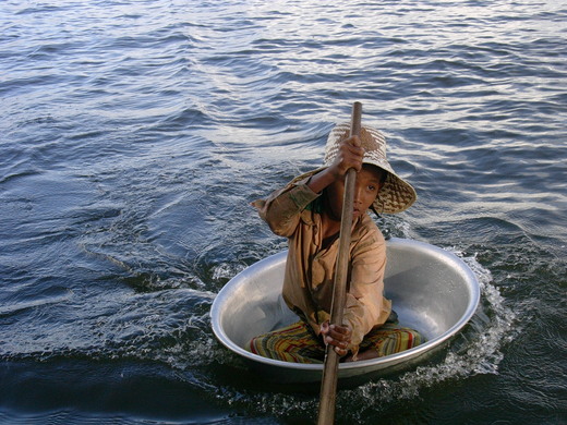 雖然正值萬聖節,可是在遺址附近流連的小朋友,並不懂這個西方的玩意兒,與貧窮為伍的他們,最大的快樂就是一顆糖果。最令我震撼的則是來自洞里薩湖「水上人家」的小朋友,他們與家人擠在一艘小小的船屋裡,缺乏物質享受的他們,居然乘著鋁製的洗澡盆,在湖中心等著向遊客的船隻要糖果。