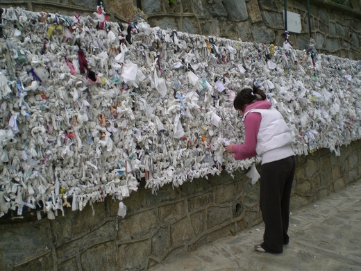 每年有上百萬信眾造訪聖母故居,並在「許願牆」留下願望。他們將心願寫在紙條、衛生紙、手帕等任何隨身物品,然後繫在牆上。在現場參觀時,就見到幾位女教徒虔誠地寫下她們的心願,並小心翼翼地繫在牆上。還有個年輕男孩,手上拿張空白的紙,開口向我與友人借筆,然後飛快地寫下他的心願。