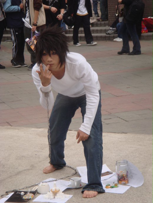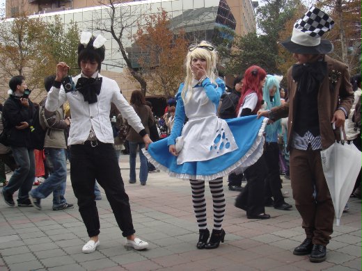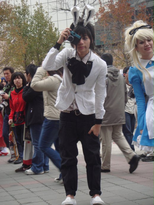運氣好的我們,遇到HC作者跟他們友人,穿著作者設計的愛麗絲夢遊仙境+死亡筆記本的裝扮,在忙於販賣商品。