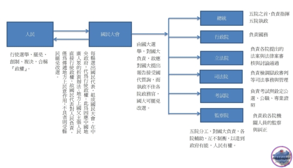 (筆者有一小冊,名為「淺析五權憲法的中央制度」中「第三章 中央制度」(http://greatroc.tw/thread-13655-1-1.html)對於國父架構剖有些解析,望能圖利讀者理解。)