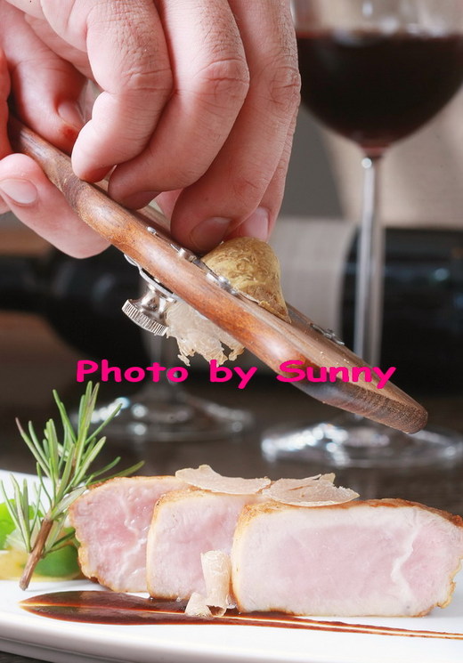 Jimmy指出,小牛、伊比利豬、干貝等清新味道的食材,最能彰顯搭白松露的細緻香氣。遠東飯店馬可波羅主廚康傑男表示,白松露濃郁的蕈菇芳香,入菜時,只要刨薄片或磨粉狀,即有畫龍點睛之效,愈簡單的料理愈凸顯白松露的傲人風味。