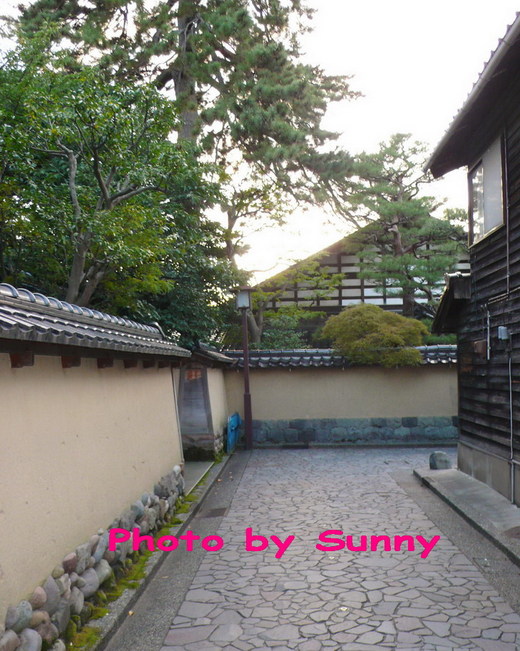 來到金澤的第一站,我們走到香林坊後面的「長町武家屋敷」;台灣旅行社翻譯為「長町武士街」。這裡是江戶時代中級武士的住宅區,整條街用石板鋪成,獨棟平房的建築,家家戶戶都擁有一片庭院。從房屋的外觀看不出歷史的痕跡,有些屋子改成料亭,大部分仍是住家,是極有氣質的「高級住宅區」。灰色的屋舍配上入秋微涼的氣氛,讓街道多了幾分莊嚴寧靜感。