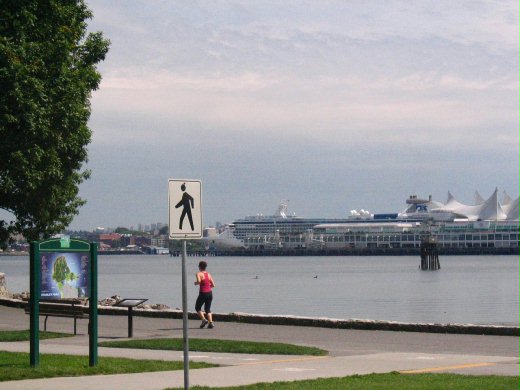 我只記得港口對岸是溫哥華廣場,旁邊有五個白色帆布式的尖頭