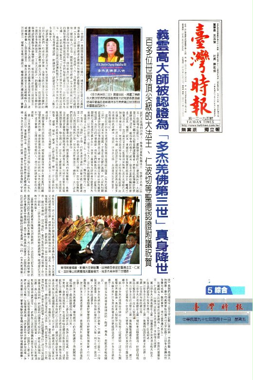 義雲高大師被認證為 多杰羌佛第三世 真身降世