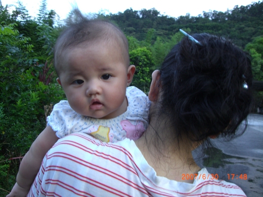自從天使的脖子堅挺後,我喜歡抱她去散步。看到花,就指著花對她說:「妳看,那是花花。」看到樹,就指著樹說:「妳看,那是樹樹。」看到……。