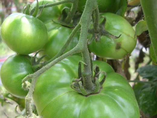 外子只好早起,破曉時分就趕去園裡摘番茄,摘多少算多少,然後再趕去上班。休假自也不得閒,賣相較差的番茄,我們就分送親友,以免爛掉糟蹋了。