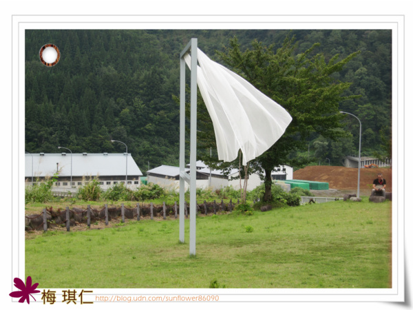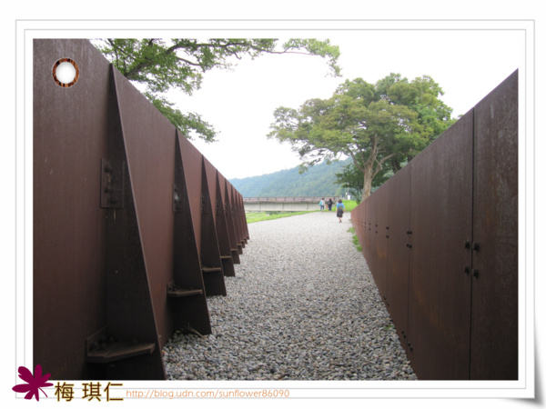 當地原是垃圾堆置的場所,因久未管理,一片荒煙漫草,經藝術家以處理過之鋼材佈展後,成為散心的好所在。