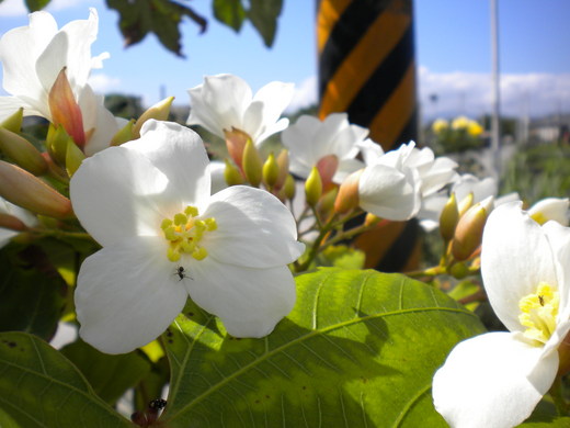 天氣實在是異常得可以。11/5難得陽光露臉,走訪二結穀倉後,意外在路邊發現一棵綻放的「五月雪」,天氣的錯亂再添一樁。