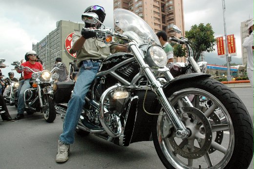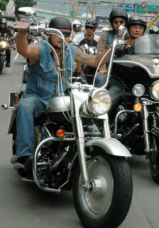 的搭載女伴,也有的獨自蓄著鬍子騎著高手把重機車。