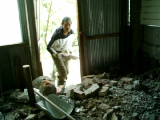 招募姪兒挪亞和以撒兩兄弟來進行拆牆清空屋舍的工程,和叔叔、嬸嬸換工,今天他們來幫我們清空「閱覽室」的工作,星期日下午我要去「還工」給他們,幫他們整理豬舍。