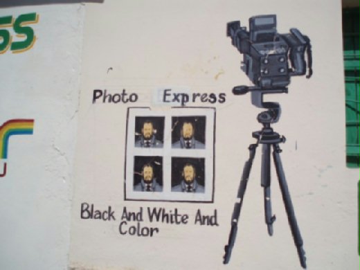 整個照相過程很快,當攝影師叫我看鏡頭時,我還真看不出他那台古董照相機的鏡頭在哪裡。拍完照大約一分鐘就可以拿照片,很好玩的事是,攝影師居然拿著吹風機在吹乾照片,我看到十一直大笑不已。照一次相片花費大約3.5美元,大頭照片共四張,品質不是很好。