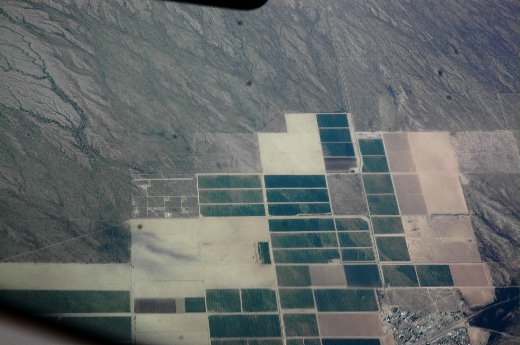 前往洛杉磯的大陸航空班機往下瞭望,幾何圖形成了此次旅程的視覺印象。