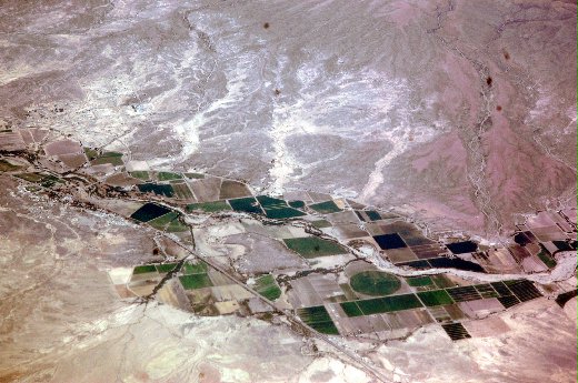 飛機高度降低後,人類的聚落就看得更清楚了,很驚訝在沙漠中也有這麼大的聚落,
