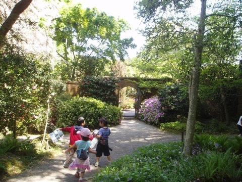 費絡麗 ( Filoli ) 早在好幾年前就有人建議我去看看。那是一個歐式的花園。正花園規規矩矩,每一朵花都可以大剌剌地曬太陽。花園規劃是一個花種、一片地。四月底竟然給我落在玫瑰未開,鬱金剛謝,青黃不接的季節。還好紫羅蘭開得一片香。費絡麗正花園是美,缺了一份涵蓄。有幾條穿梭著正花園的林蔭小道,進出典雅的石砌拱門,令人期盼與心動。不過小小孩子的興奮被雅士們叫停,("No running.")表示這兒不見得適合小小孩。大小孩大概會再等幾年再來。