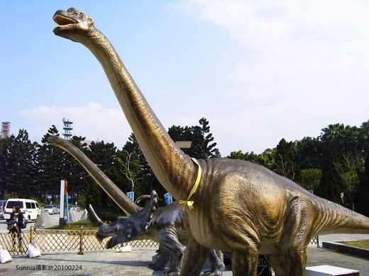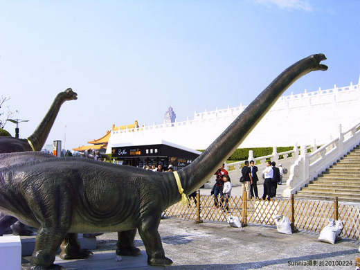 上一次帶女兒去看恐龍模型時,只看前面三隻,我今天則是為了拍照再回去中正紀念堂,也許是好天氣、外加我目前是個在家看盤的無業遊民,沒有趕時間回辦公室的壓力,抱著閒逛的悠哉心情散步時,意外發現上回漏掉三隻恐龍模型,這回當然要快點補捉鏡頭,沒想到陽光太刺眼了,鏡頭前幾乎一片漆黑,本來我很擔心在陽光底下拍攝的照片會失敗,沒想到匯入電腦後拍的一清二楚,真的是天助我也,讓我能一嘗宿願拍回家哄女兒開心,也順便替我的blog加菜。