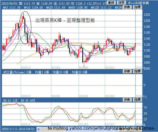 只要出現長黑K棒,陷入整理的機會相當大