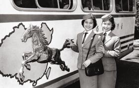 台汽有自購此型車, 沒記錯應是 1981 ISUZU DBR500馬力175HP, 是第四運輸處金馬號用車,梨山,花蓮,蘇澳等15輛, 另外一批也是自購1975 HINO BX420 230輛,馬力沒有DBR500這麼大, 差別是窗玻璃三片與車型有點雷同,如有誤請更正... 奔馳於1959年~1980年的長途客運, 由臺灣汽車客運公司(臺汽)營運及管理。 1959年,當時仍有公路客運業務的台灣省公路局推出金馬號, 並招募20位女性隨車服務員「金馬小姐」。 金馬小姐的規定服裝為藍色窄裙制服、船形帽與黑色肩包, 工作是:⑴吹哨子協助司機倒車靠站、⑵在車上服務旅客[1]。 金馬號車輛是於1956年及1958年購入,其車身左側綴有中國地形圖鐫以金色馬匹一隻的圖案, 內部設計的座椅採坐臥兩用,其餘設備提供錄音機、茶水、電風扇,為當時最舒適的客運車款。 1980年,金馬號達到營運之鼎盛,車輛總數多達458輛。 2010年6月5日,國光客運舉辦金馬小姐回娘家,金馬小姐17人參加, 說:「當時考金馬小姐就像選中國小姐一樣,地位跟空姐一樣。」[2][3] 2013年9月30日, 首批金馬小姐之一的馮桃鮮出席中華民國交通部「世紀交通─運輸重要檔案展」時說, 當年要考上金馬小姐,身高得160公分,體重不能太重,要通過筆試、面試, 還得經過一個月的美姿美儀、播音訓練,才能執業; . 其他參考: https://www.7car.tw/articles/read/3410/second_33