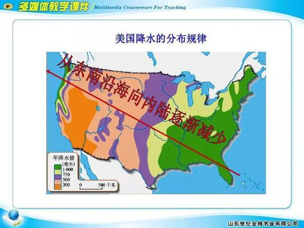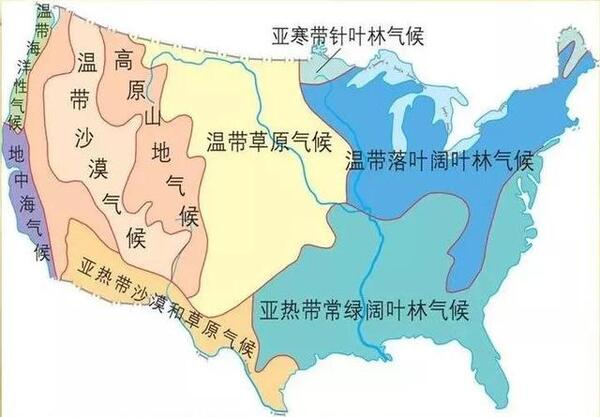 美國氣候東部平原面積廣大,濕潤多雨,西部乾旱少雨,多高山荒漠,降水較少,