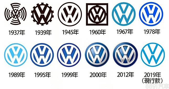 福斯汽車自1937年成立以來,Logo歷經多達12次改動,