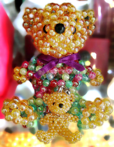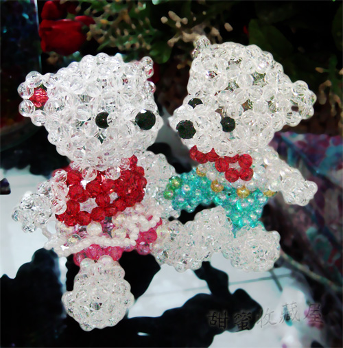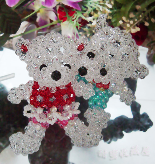 可惜不是真的水晶,因為我財力沒那麼雄厚啦!不要說用8mm水晶,就算用3mm也很傷本耶,泰迪熊一隻至少要用4~5百顆珠子,我還不敢這麼敗家啦!