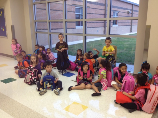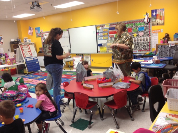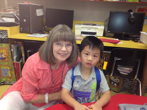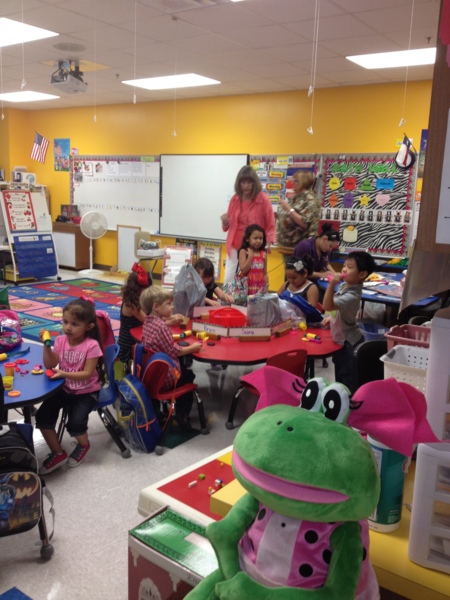 媽媽牽著宥宥進教室,老師已經等在那裡了,看起來是個很nice的阿嬤級老師,剛在車上有點不安說媽媽要陪著的宥宥,看到桌上的黏土和上面的名牌,就很自動地開始坐下玩了起來了…教室看起來很可愛,跟台灣的學校很不一樣(不知道現在台灣有沒有改變?)班上有19個同學,一個老師配一個助理,讓同樣身為學校老師的我好羨慕呀?我簡單地跟老師講了一下宥語言的問題,他們老師回說:不用擔心,這個年紀的孩子,語言學習很快的。我想也是。