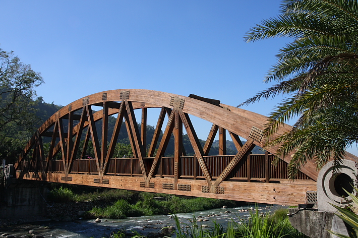 石岡休閒農業園區於石岡區農會展售中心旁之食水嵙溪上,興建一座東南亞最大之原木木橋,長40米、寬3.5米。於木橋旁並設有一座全國最大的水車及河岸觀景台,周邊興設觀光玫瑰花園及花圃。