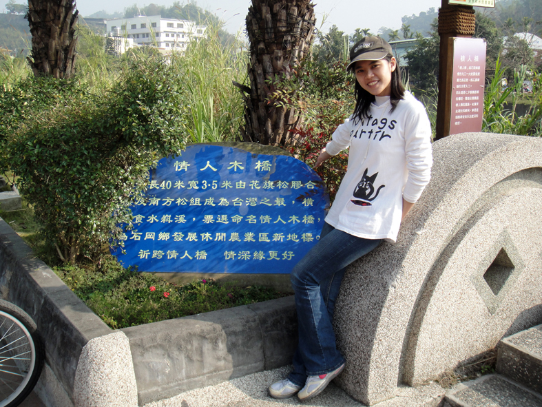 這座遠東地區最長的景觀情人木橋,橋長達40公尺,寬3.5公尺,最大的特色是無橋墩且具七級以上的防震性。使用美國花旗松和美南松從美國進口之後,由美國技師到現場指導台灣廠商施工,直接嵌入,再以鐵片膠合,外表進行防腐處理,保留原木原色,非常壯觀。木橋旁食水嵙溪河岸種植野薑花並設置河岸景觀平台、全國最大的水車、向日葵花園和保健植物園。園區內有一條風景優美的登山步道連結石岡著名的千年神木風景區。步道途中設有三座涼亭、一處苗圃及植物花園及公共設施等。