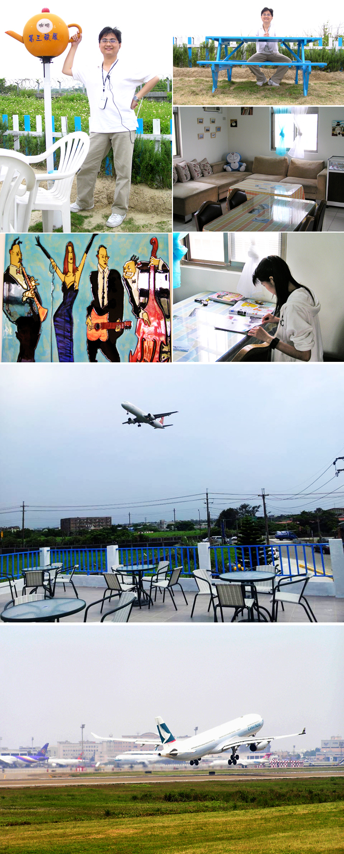和機場跑道只有一牆之隔,坐在二樓陽台,就像坐在電影院第一排看戲一樣,有身歷其境,停機坪上來來往往的飛機五顏六色的跑道,都看得非常清楚,位於航道正下方,當飛機要降落時呼嘯而過,不僅聲響震耳,機腹和起落架迎面上來,刺激感超足。