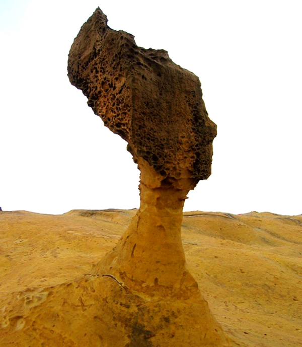 野柳的地層主要由傾斜的層狀沉積岩所組成,海岬與海灣的形成是因軟弱的岩層被侵蝕後凹入形成海灣,而堅硬、抗蝕力強的岩石便相對突出形成海岬。 遠眺野柳岬時,它就像隻烏龜般俯臥在海中,所以又稱為”野柳龜”。 ...