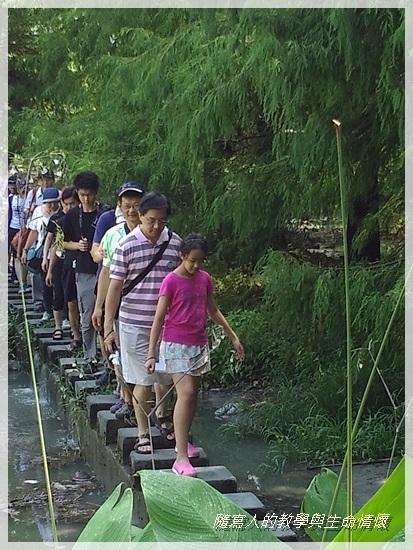 每個人雖然戰戰兢兢走過石階,卻別有一番樂趣。