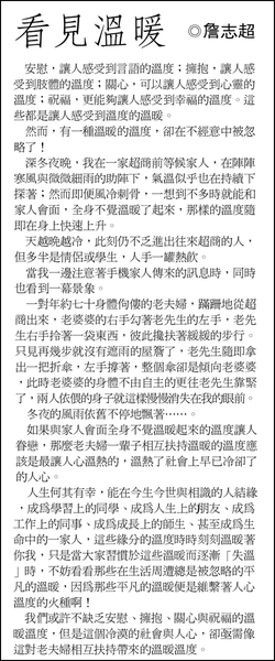 【看見溫暖】刻在心底的溫度(2024/9/26刊登於金門日報副刊)