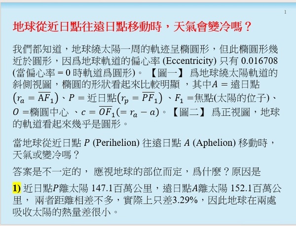 地球從近日點往遠日點移動時,天氣會變冷嗎?
